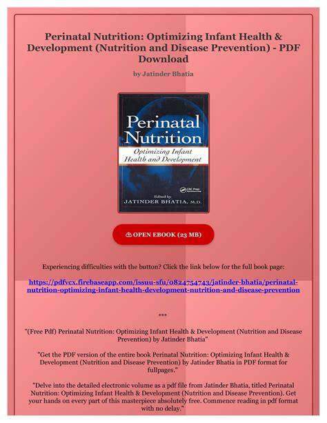 In order to read or download Perinatal Nutrition Optimizing Infant Health And Development Book Mediafile Free File Sharing ebook, you need to create a FREE account.